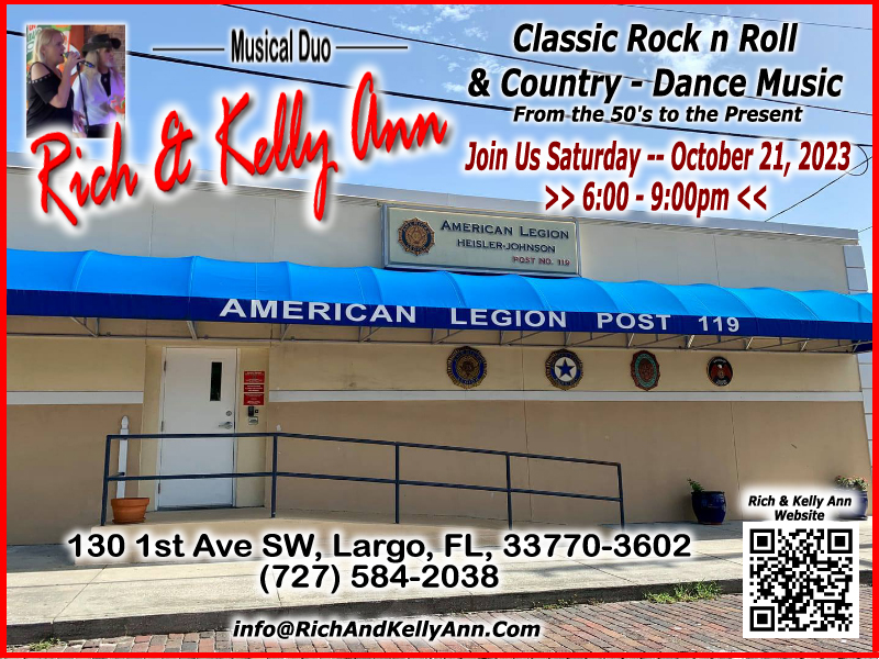 Hwy 19 N, Clearwater, FL 33764 - 727 536 1765 ... 7:00 to 10:00pm ... Join Rich and Kelly Ann, for an evening